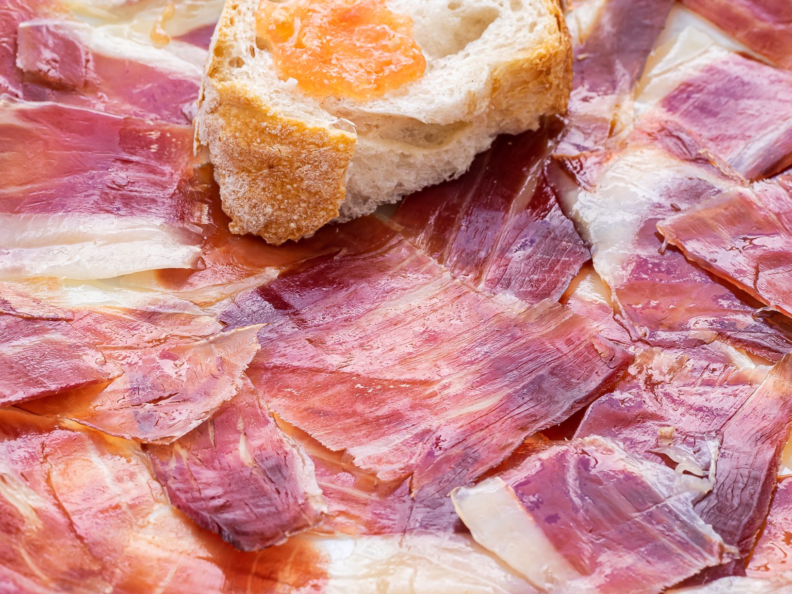 Cortado a cuchillo, acompañado de tostas de pan con tomate, como mandan los cánones